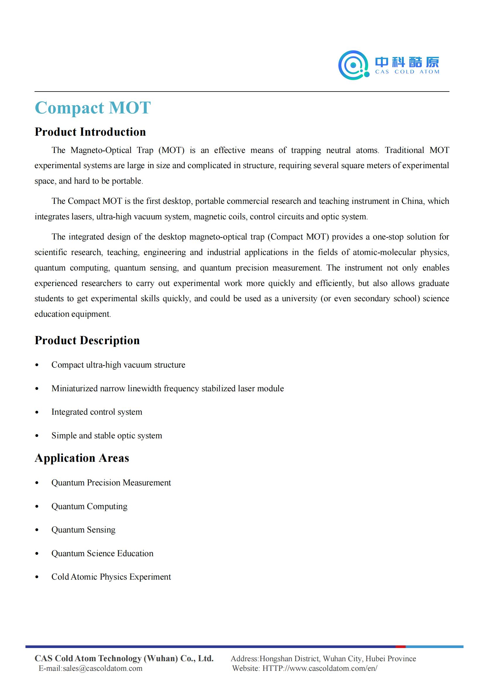 Compact Portable Laser System Quantum Education Ultra-high Vacuum Cavity Compact MOT
